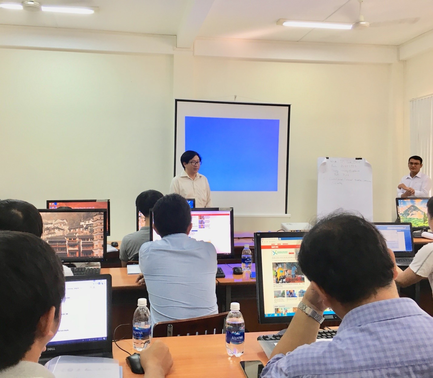 Buổi tập huấn do các cán bộ của Viện NC Biến đổi Khí hậu, Khoa MT & TNTN, Trường Đại học Cần Thơ đảm nhiệm giảng dạy, có sự tham gia học tập của các cán bộ kỹ thuật của các công ty cấp nước CANTHOWASSCO, CANTHO2WASSCO, HAWASUCO và SOCTRANGWACO.