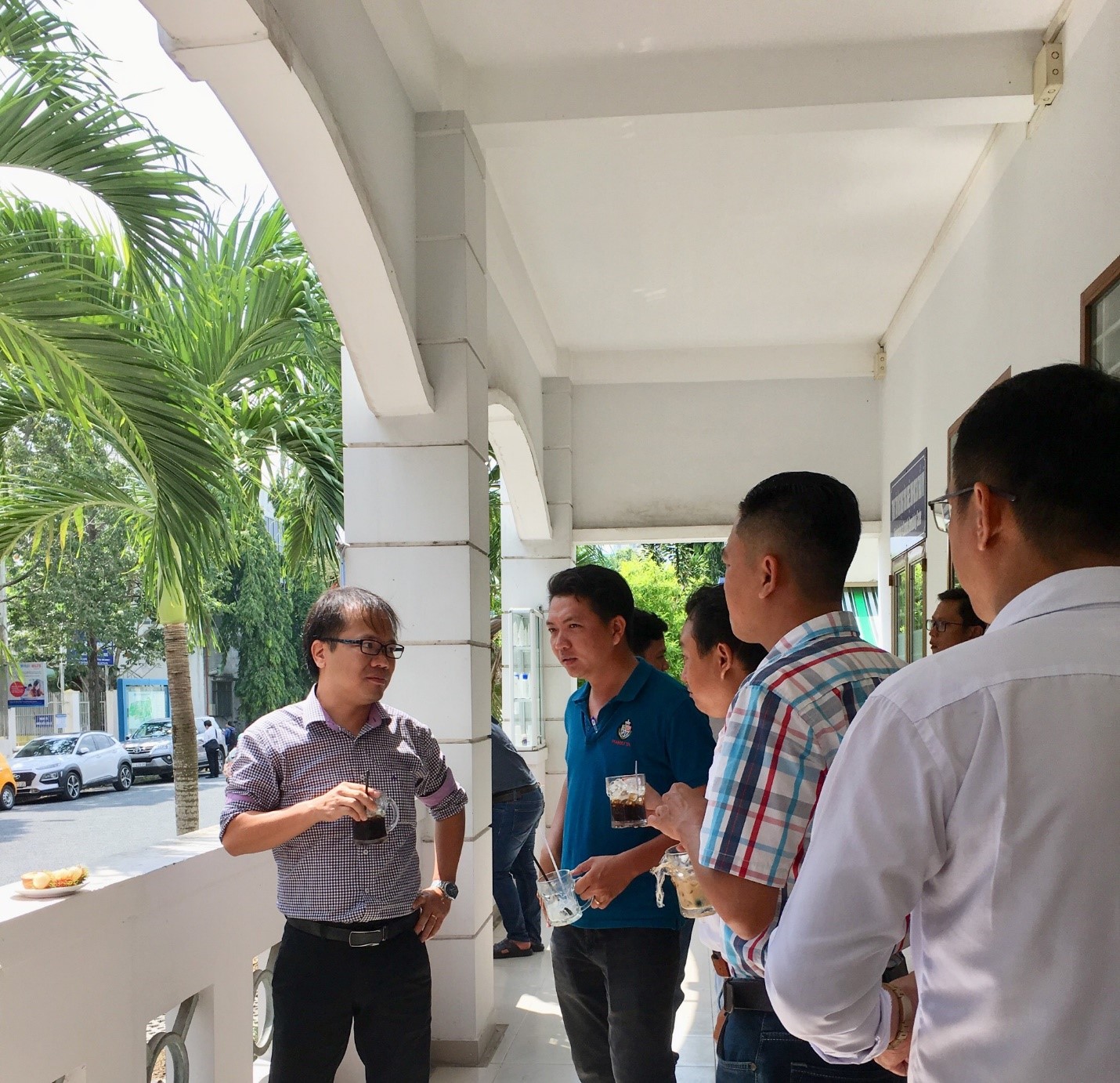 TS Nguyễn Đình Giang Nam cùng học viên thảo luận tình hình cấp nước ở địa phương (Ảnh Viện Dragon)