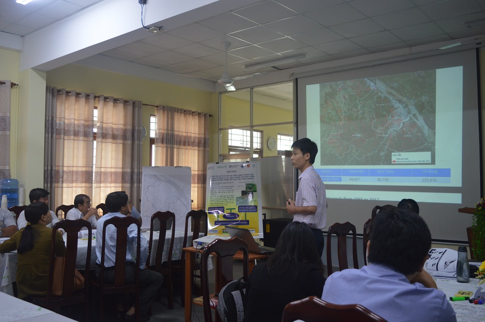Tại hội thảo các đại biểu được nghe báo cáo về các rủi ro ngập lụt và các giải pháp hạ tầng xanh ở Cần Thơ TS. Trần Hữu Tuấn (Trường Đại học Huế), Th.S Đinh Diệp Anh Tuấn (Viện Nghiên cứu Biến đổi Khí hậu – Đại học Cần Thơ) trình bày.