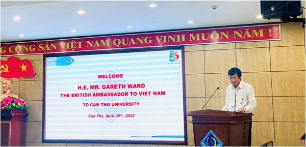 Ngày 20/4/2022, Viện Nghiên cứu Biến đổi Khí hậu (Viện DRAGON-Mekong), Trường Đại học Cần Thơ đã vinh dự đón tiếp Ngài Gareth Ward, Đại sứ Liên hiệp Vương quốc Anh và Bắc Ireland tại Việt Nam cùng đoàn Đại sứ quán Anh tại Việt Nam. Tiếp đoàn có PGS. TS. Văn Phạm Đăng Trí, Viện trưởng Viện DRAGON-Mekong.