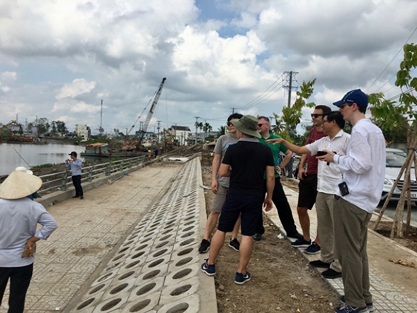 PGS.TS Nguyễn Hiếu Trung và nhóm thành viên dự án tham quan công trình “Hồ điều hòa Búng Xáng” (Ảnh Viện Dragon)