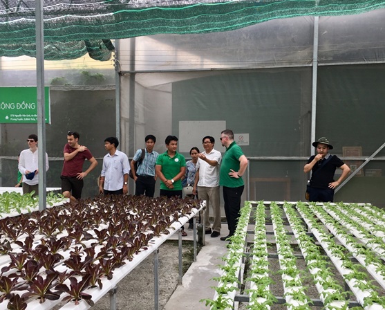 PGS.TS Nguyễn Hiếu Trung và nhóm thành viên tham quan Mô hình trồng rau thủy canh (Ảnh Viện Dragon)