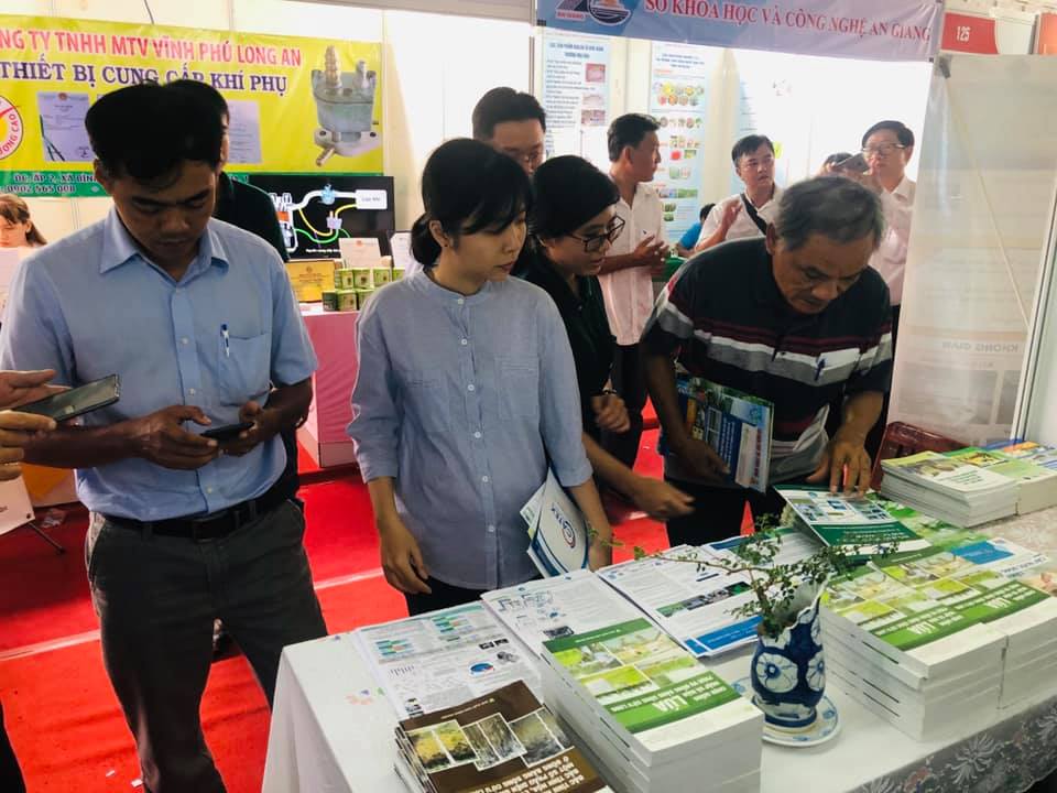 GS.TS Hà Thanh Toàn, hiệu trưởng trường Đại học Cần Thơ đến thăm quầy trưng bày của Viện (Ảnh Viện Dragon)