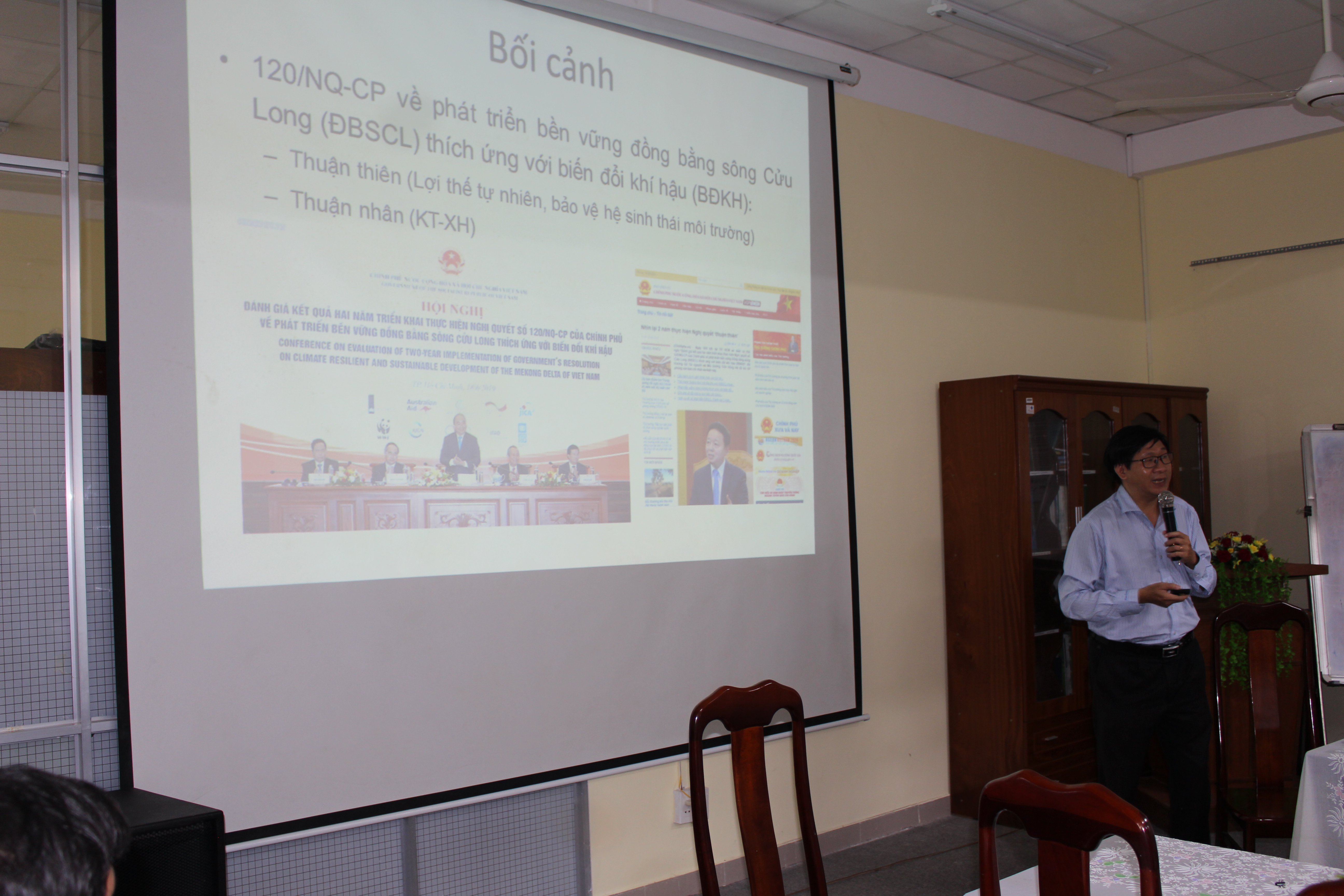 Tại Hội thảo, đại biểu đã nghe báo cáo phân tích diễn biến lũ lụt và khô hạn ở ĐBSCL trong 20 năm qua, tình hình thuỷ văn liên quan đến hạn mặn năm 2020 ở vùng ĐBSCL, quản lý sử dụng đất đai trong điều kiện thích nghi hạn mặn, các giải pháp cấp nước tại ĐBSCL trong điều kiện hạn mặn và các chính sách để ứng phó với hạn mặn cho vùng ĐBSCL.