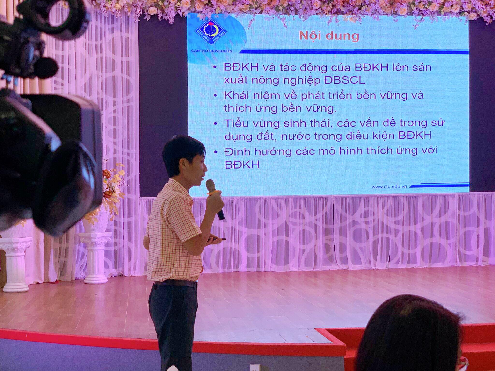 Ngày 22/09/2020, Th.S Đinh Diệp Anh Tuấn - Chánh văn phòng Viện Nghiên cứu Biến đổi Khí hậu, Trường đại học Cần Thơ (Viện DRAGON-Mekong) – CTU) đã tham gia báo cáo chuyên đề Giới thiệu các mô hình tiêu biểu ứng phó với Biến đổi Khí hậu vùng Đồng bằng sông Cửu Long (ĐBSCL) trong khuôn khổ hội nghị Tăng cường năng lực thích ứng của cộng đồng trong bối cảnh biến đổi khí hậu vùng ĐBSCL