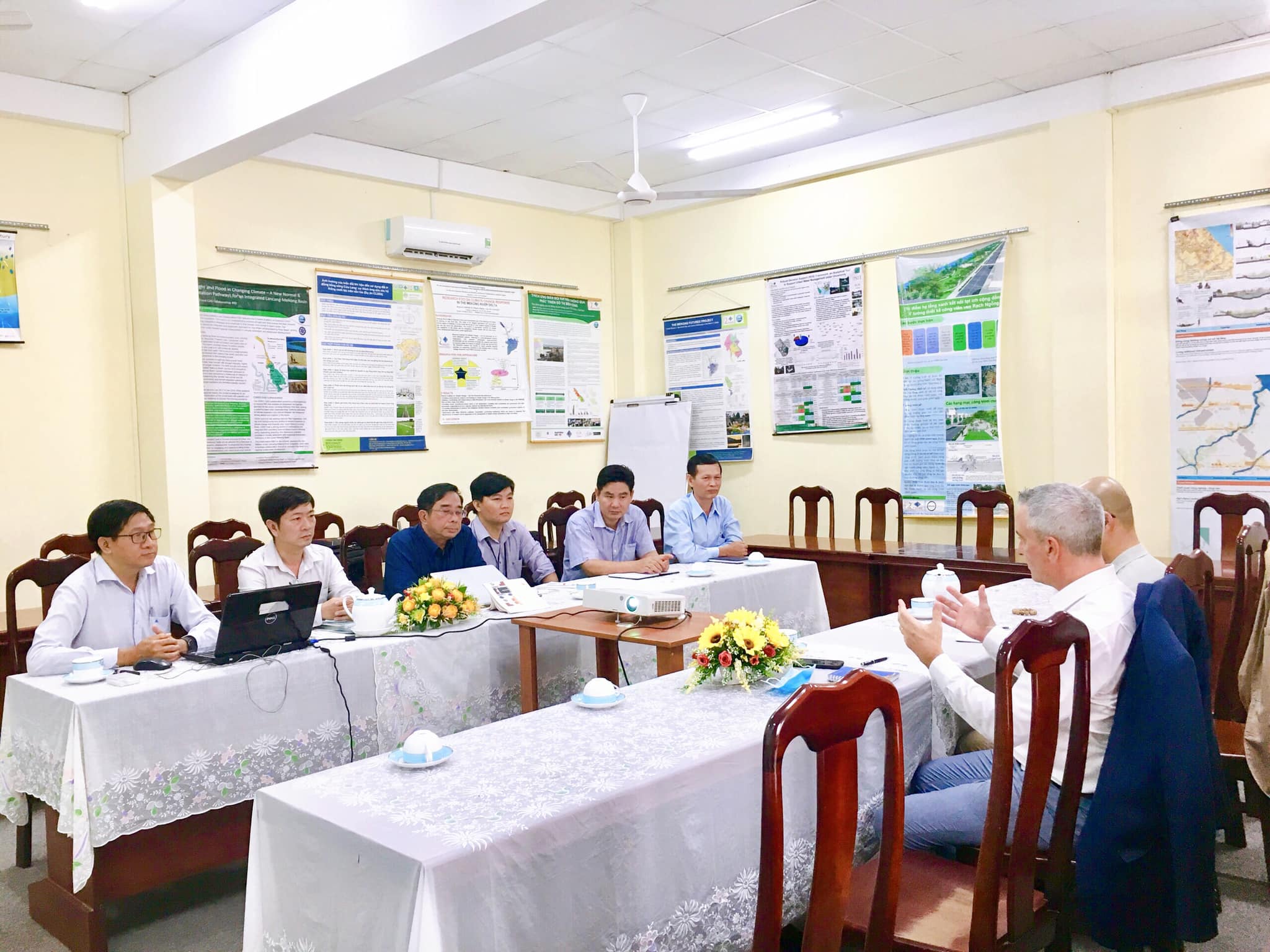 Tiếp đoàn có lãnh đạo Viện: PGS.TS Nguyễn Hiếu Trung - Viện trưởng Viện và PGS.TS Lê Anh Tuấn - Phó Viện trưởng và cán cán bộ, giảng viên của Khoa Môi trường và Tài Nguyên Thiên nhiên và Viện Nghiên cứu Phát triển ĐBSCL, Đại học Cần Thơ.