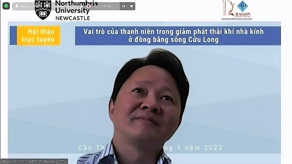 Với mục tiêu tham vấn các đơn vị liên quan về vai trò của giới trẻ trong việc giảm phát thải khí nhà kính và đánh giá mức độ quan trọng cũng như sự quan tâm của các bên liên quan trong việc giảm phát thải khí nhà kính ở đồng bằng sông Cửu Long, Viện Nghiên cứu Biến đổi Khí hậu, Trường Đại học Cần Thơ (DRAGON-Mekong) phối hợp với Trường Đại học Northumbria, tổ chức hội thảo trực tuyến về “Vai trò của thanh niên trong giảm phát thải khí nhà kính ở đồng bằng sông Cửu Long” (diễn ra vào ngày 19/1/2022).