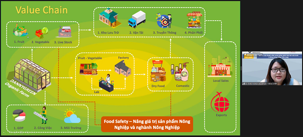 Cô Nguyễn Thị Ngọc Sương - Quản lý dự án Bảo Gia Farm Camping (farm education) chia sẻ tóm tắt về “Vai trò của doanh nghiệp trẻ trong việc góp phần giảm phát thải khí nhà kính từ chuỗi giá trị cung ứng bền vững”.