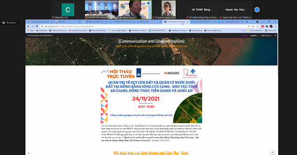 Responding to the United Nations Climate Change 26th Conference of the Parties (COP26) in Glasgow, United Kingdom, the DRAGON-Mekong Institute at Can Tho University, in collaboration with the Arcadis organization (Netherlands), hosted a webinar on "Governance on Land Subsidence and Groundwater Management in the Mekong Delta” with special focus on An Giang, Dong Thap, Long An and Tien Giang on November 24th, 2021”, under the sponsorship of the Netherlands Enterprise Agency.