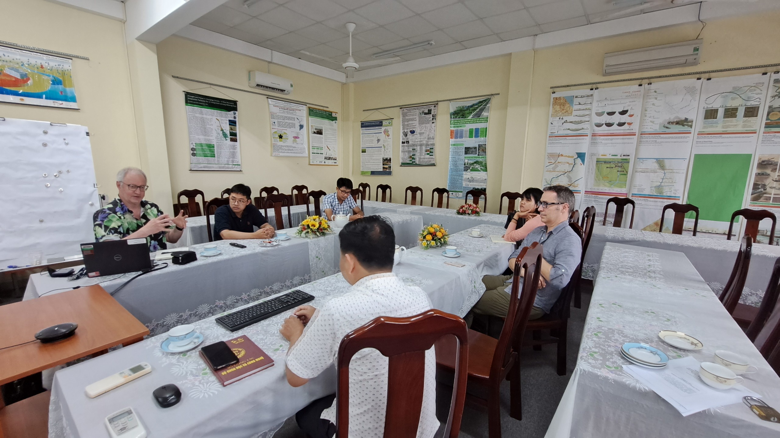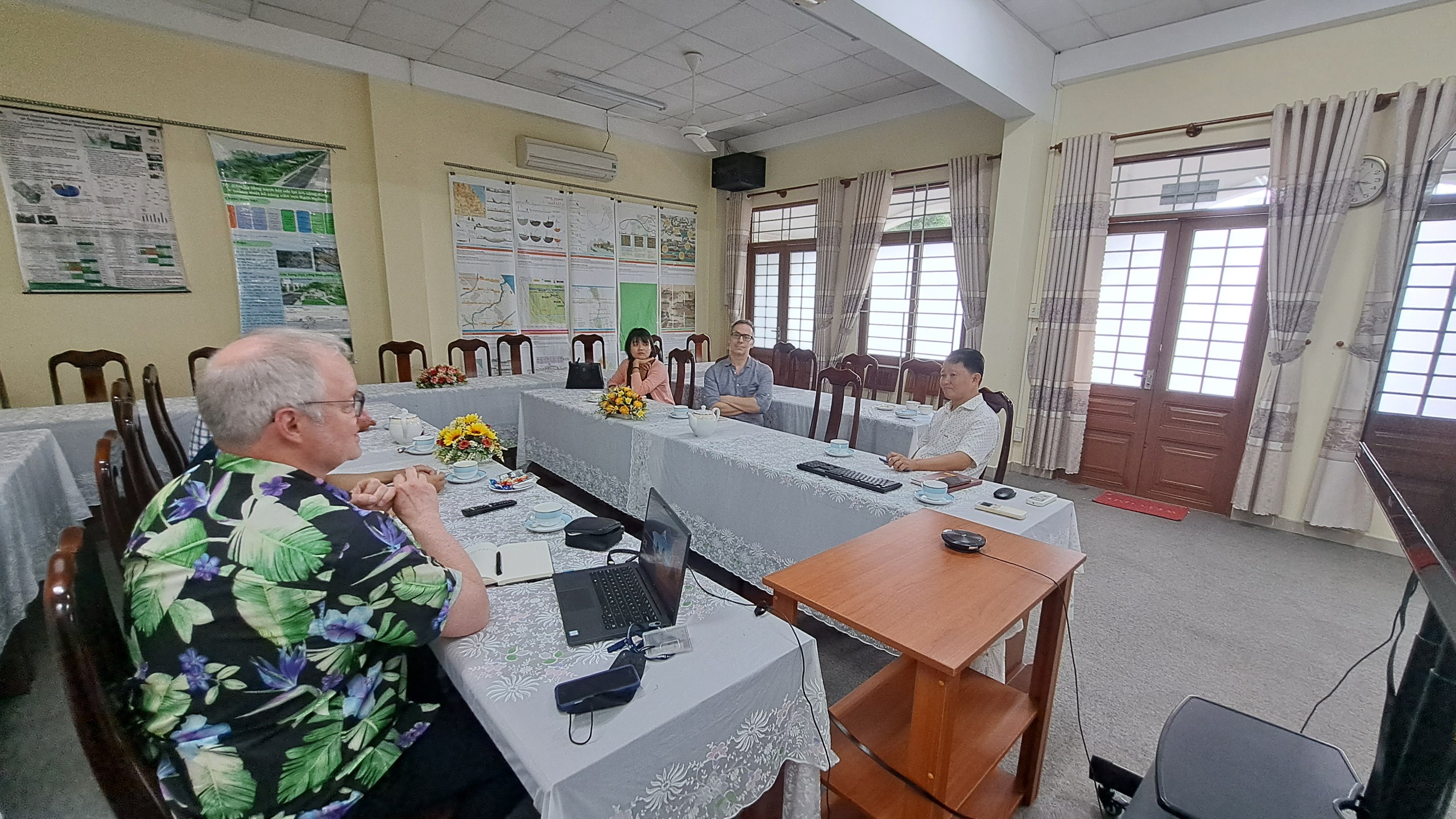 On June 26, 2022, Mr. Thomas M. Schmidt, Director of the Regional Office of Environment, Science, Technology and Health, East and Southeast Asia Center, U.S. Embassy in Bangkok (Thailand), Mr. Matthew E. Andersen, United State Geological Survey (USGS) visited and worked at the Institute for Climate Change Research (DRAGON-Mekong Institute), Can Tho University. Participants include the researchers, personnel, and Assoc. Prof. Van Pham Dang Tri, director of the DRAGON-Mekong Institute.
