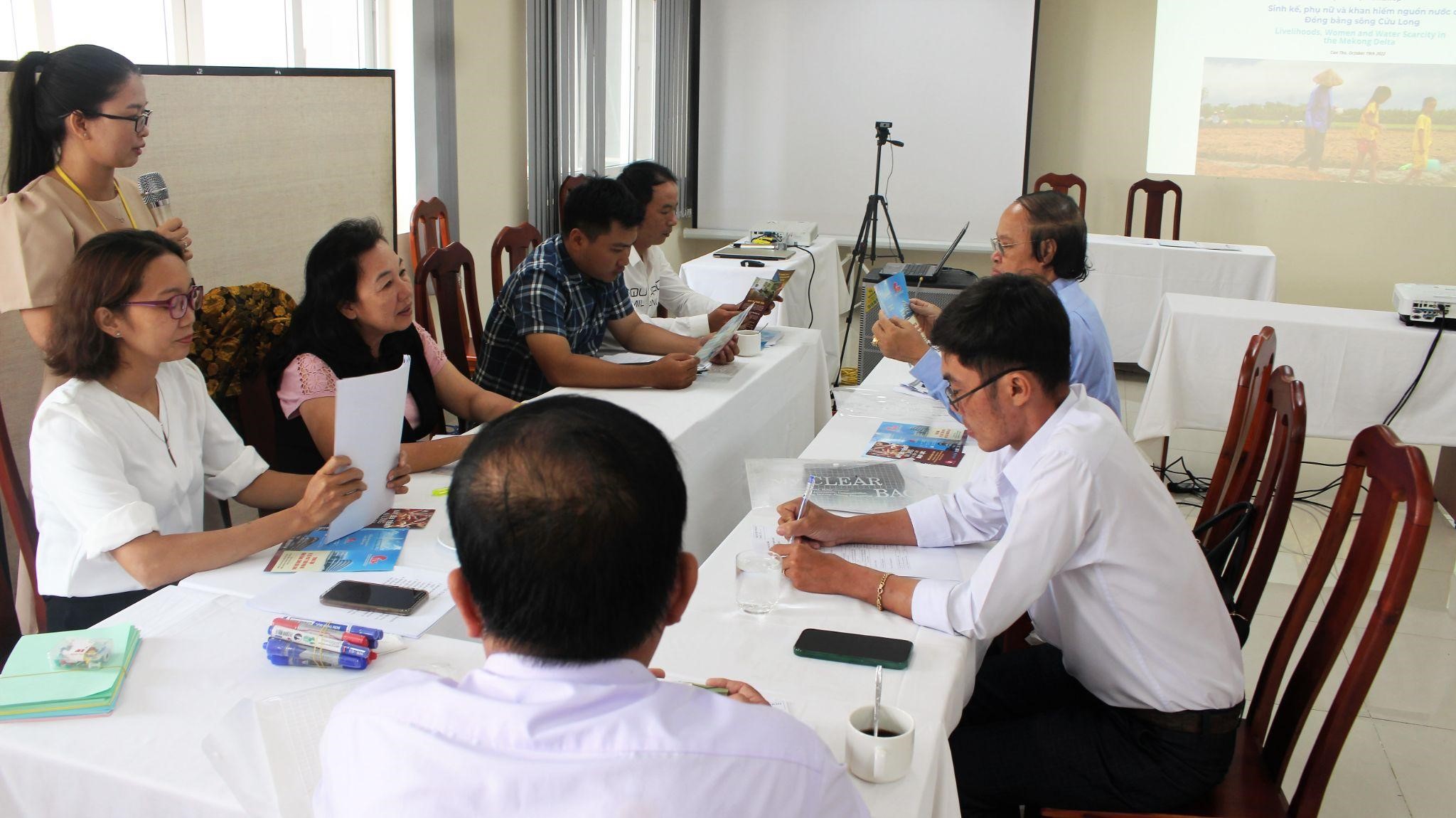 Attending the workshop were more than 20 delegates from provinces representing 3 ecological sub-regions of the VMD, namely floodplain, midland, and coastal zone. Delegates include officials of departments, associations, farmers representing the main agricultural farming models, and a number of other interesting businesses along with staff from Can Tho University. The workshop was organized with the goal of improving the resilience of communities, especially farmers and women, through understanding the challenges of water scarcity in the context of climate change happening in VMD. Participants were informed about issues of water resources, and climate change in the 3 sub-regions in terms of nature and management as well as impacts on people's livelihoods and women's lives in the region. In addition, discussion activities with the participation of delegates in each ecological sub-region helped to identify some challenges and impacts of water and climate change issues on the environment, community livelihoods, and women's lives. At the same time, the workshop also listened to the participants share about the difficulties that need to be solved as well as discussed solutions to cope with the problem of water resources and climate change, the orientation of cooperation between the stakeholders, including managers - scientists - businesses - farmers, women, in responding to climate change is taking place increasingly complex.