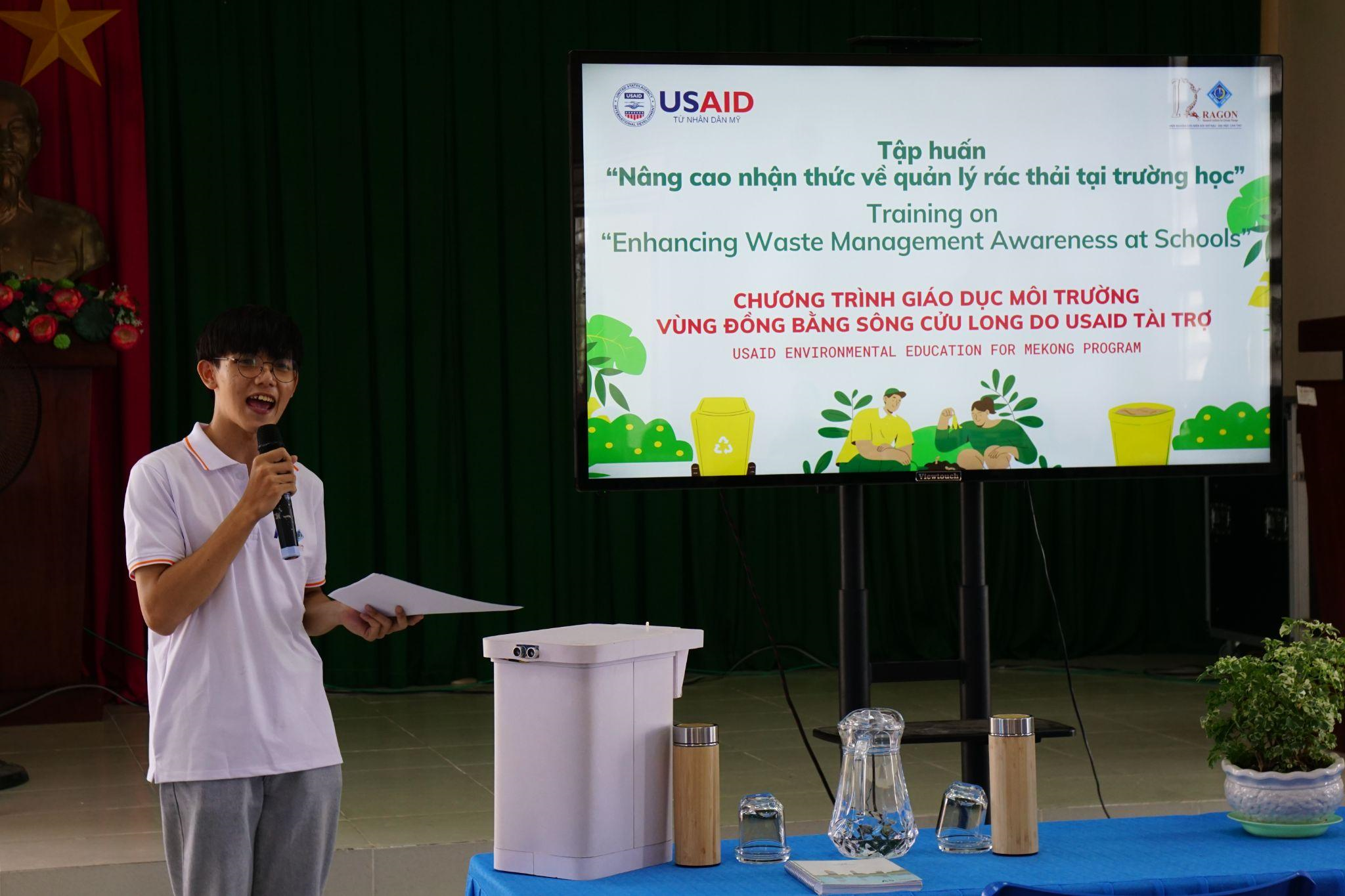 The training program "Enhancing Waste Management Awareness at Schools" continued on July 13, 2023, at Thot Not High School. The main objective of this session was to provide instructions on sorting solid waste and composting organic materials. This training is part of a series of activities conducted under the “USAID Environmental Education for Mekong Program”, a collaborative effort between the Climate Change Research Institute (DRAGON - Mekong) and the United States Agency for International Development in Vietnam (USAID – Vietnam). Thot Not High School is the second school to participate in these training activities within this program.