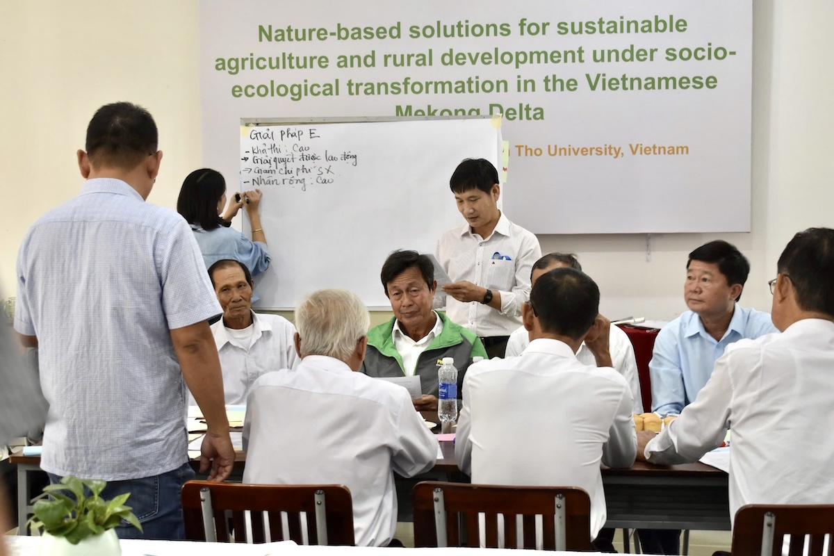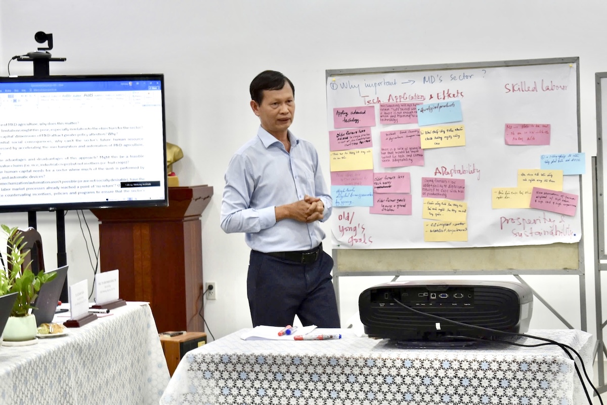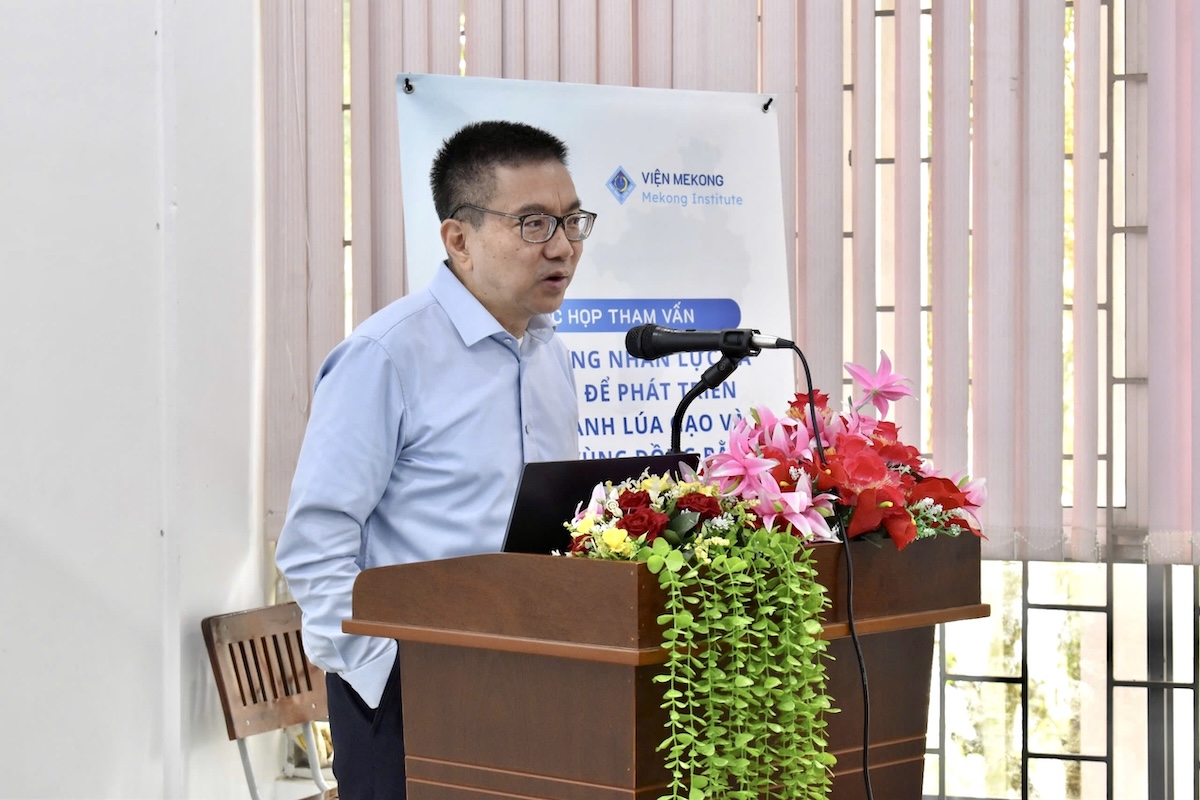 Overview of the current state and the need for agricultural transformation in the Mekong Delta: Objectives, methods, and expected outcomes of the workshop – presented by Dr. Dang Kieu Nhan, Mekong Institute, Can Tho University.