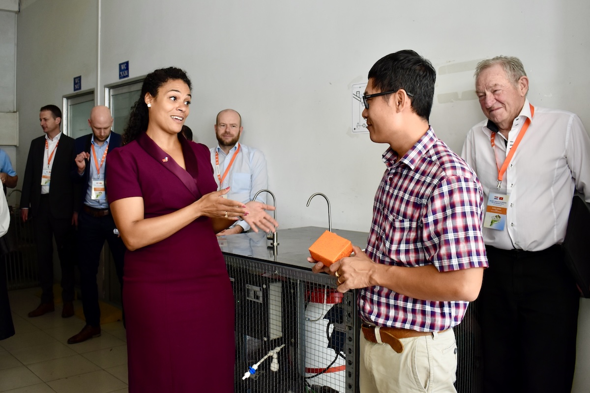 At the opening of the event series, delegates visited a pilot rainwater harvesting and treatment system at the Mekong Institute, presented by Dr. Hong Minh Hoang from the Mekong Institute, Can Tho University. The project focuses on collecting and assessing the quality of rainwater after treatment through a non-energy-consuming system that applies integrated filtration technology to effectively remove impurities and microorganisms, ensuring safe drinking water standards for communities in the Mekong Delta. The system is currently being piloted in various settings, including urban areas, livestock farming zones, and agricultural cultivation sites in Can Tho, Soc Trang, and Ca Mau. Funded by the Government of the Netherlands, the project is implemented during the 2023-2025 period. Wageningen University serves as the overall project coordinator, while the Mekong Institute is responsible for coordinating activities in the Mekong Delta. Participating partners include Water Innovation Consulting (the Netherlands), PB International (the Netherlands), and STEPS Co., Ltd. (Vietnam).