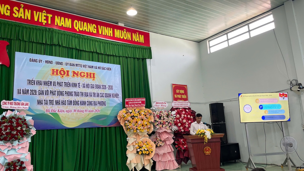 On January 30, the People’s Committee of Ho Dac Kien Commune solemnly organized a Conference to implement socio-economic development tasks for the 2026–2030 period and the year 2026, in conjunction with the Signing Ceremony of a cooperation agreement between the Ho Dac Kien Commune People’s Committee and the Mekong Institute – Can Tho University.