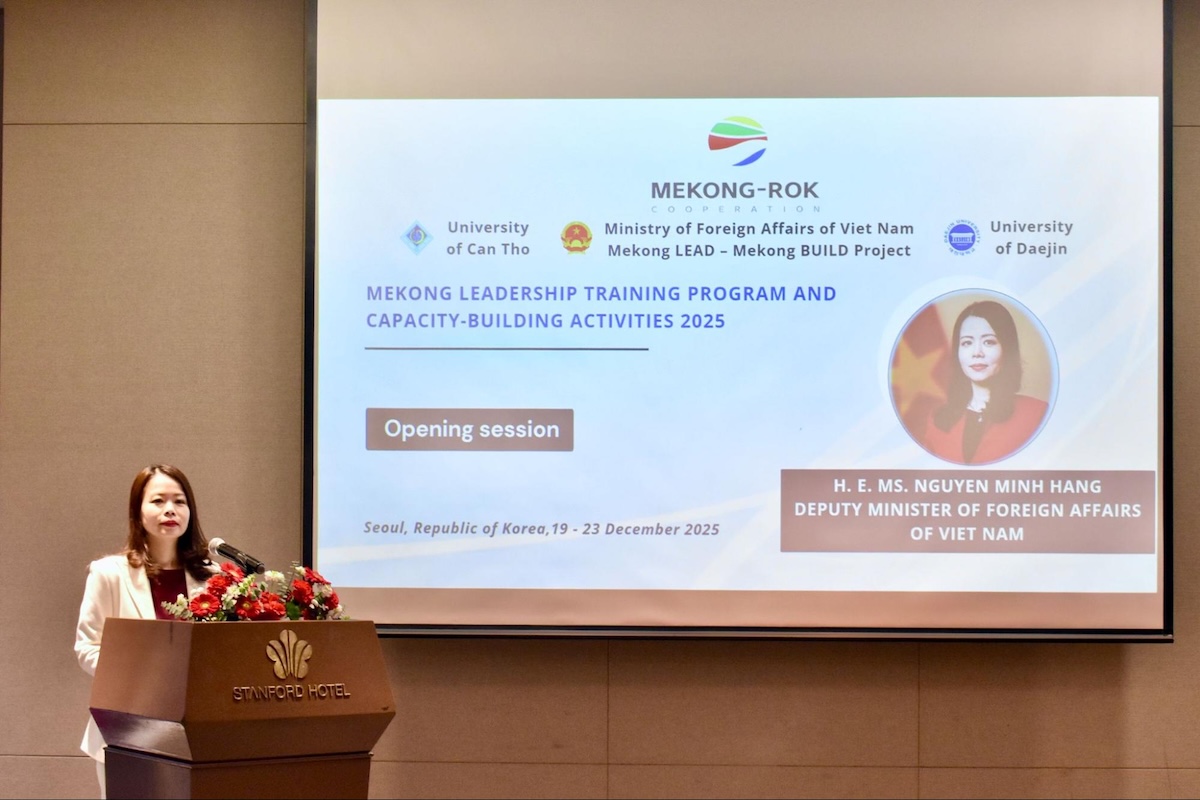 Từ ngày 19 - 23/12/2025, Chương trình Đào tạo Lãnh đạo Mekong (Mekong LEAD) đã diễn ra thành công tại Hàn Quốc. Chương trình do Vụ Ngoại giao Kinh tế, Bộ Ngoại giao Việt Nam phối hợp cùng Viện Mekong, Đại học Cần Thơ và Đại học Daejin, Hàn Quốc đồng tổ chức, trong khuôn khổ dự án "Chương trình Đào tạo Lãnh đạo Mekong và Các Hoạt động nâng cao năng lực", được tài trợ bởi Quỹ Hợp tác Mekong-Hàn Quốc.