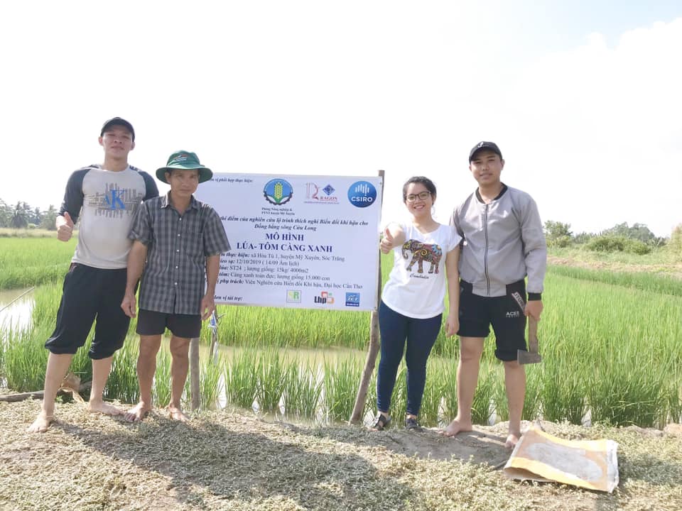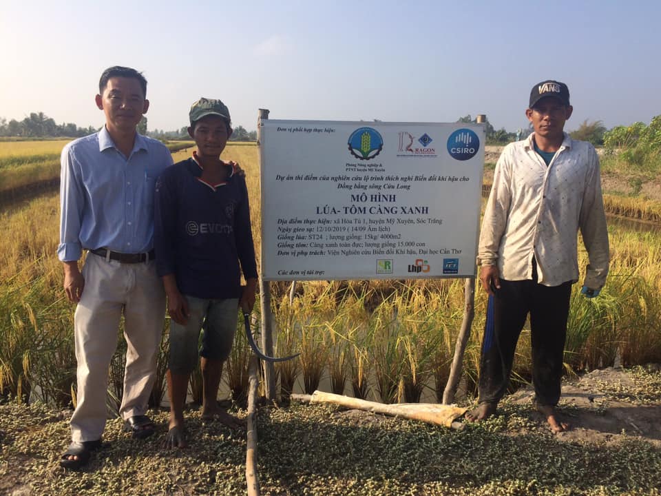 Viện Nghiên cứu Biến đổi Khí hậu, Đại Học Cần Thơ hợp tác với Hợp Tác Xã Nông Ngư Hoà Đê xã Hoà Tú 1, Phòng Nông Nghiệp huyện Mỹ Xuyên, Sóc Trăng, và các doanh nghiệp đã tài trợ gồm công ty Tôm Giống Cần Thơ, công ty lúa giống Sóc Trăng Hồ Quang, và công ty vi sinh Liên Hiệp Phát TP HCM