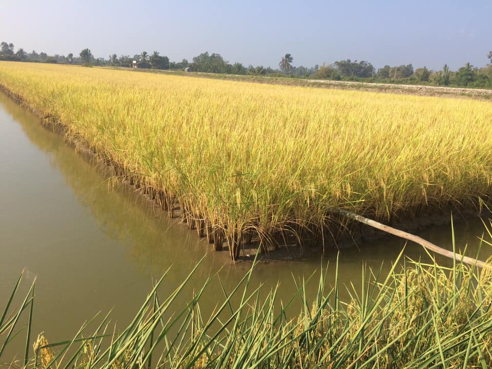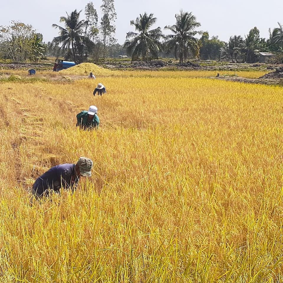 Thu hoạch lúa tại Mỹ Xuyên, tỉnh Sóc Trăng, trong khuôn khổ dự án thí điểm nghiên cứu lộ trình thích ứng với biến đổi khí hậu cho đồng bằng Sông Cửu Long, mô hình lúa tôm càng xanh (giống lúa ST24).