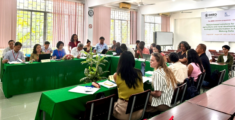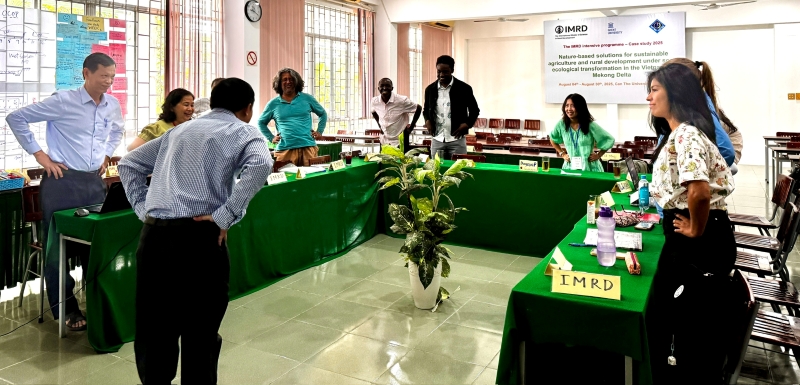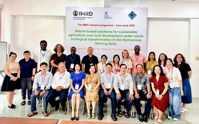 Ngày 29/8/2025, Viện Mekong, Đại học Cần Thơ đã tổ chức thành công buổi lễ tổng kết khóa học “Nghiên cứu trường hợp” (Case study) cho các học viên Thạc sỹ Quốc tế ngành Phát triển Nông thôn (International Master of Science in Rural Development – IMRD) trong khuôn khổ hợp tác đào tạo hàng năm giữa các trường trong mạng lưới IMRD do Đại học Ghent, Vương quốc Bỉ điều phối. Khóa học năm nay có 10 học viên đến từ 10 nước khác nhau (Angola, Ecuador, Hàn Quốc, Kenya, Mexico, Mỹ, Peru, Philippines, Uganda, Việt Nam) được thiết kế trong 4 tuần, từ ngày 05-29/8/2025 với chủ đề “Giải pháp dựa vào thiên nhiên cho nông nghiệp bền vững và phát triển nông thôn trong bối cảnh chuyển đổi sinh thái – xã hội ở Đồng bằng sông Cửu Long”.