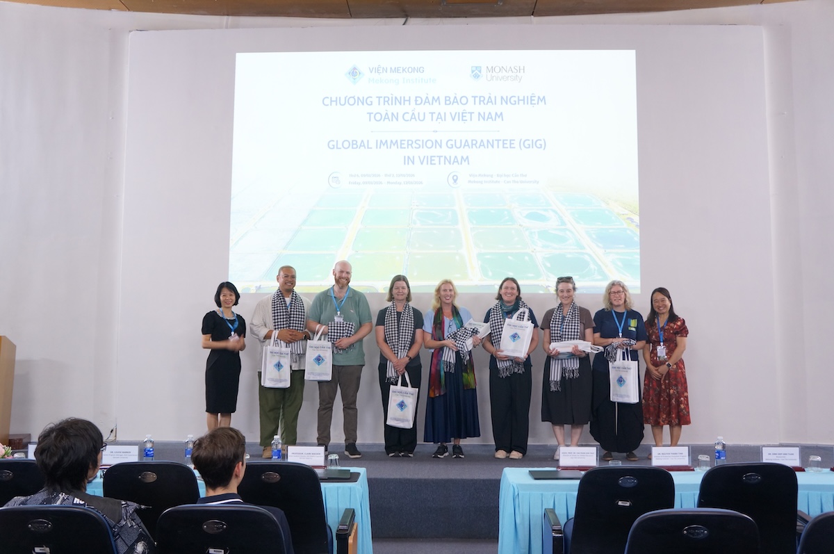 Viện Mekong – Đại học Cần Thơ đã tổ Chương trình Đảm bảo Trải nghiệm Toàn cầu (Global Immersion Guarantee – GIG) tại Việt Nam đợt 3, đã diễn ra từ ngày 09 đến ngày 12 tháng 01 năm 2026, với sự tham gia của hơn 110 sinh viên và cán bộ từ Đại học Monash. Trong chuỗi 4 đợt hoạt động học thuật – thực tiễn được thực hiện tại Việt Nam. Đợt 3 của chương trình diễn ra từ ngày 09 đến ngày 12 tháng 01 năm 2026, với sự tham gia của hơn 110 sinh viên và cán bộ đến từ Đại học Monash.