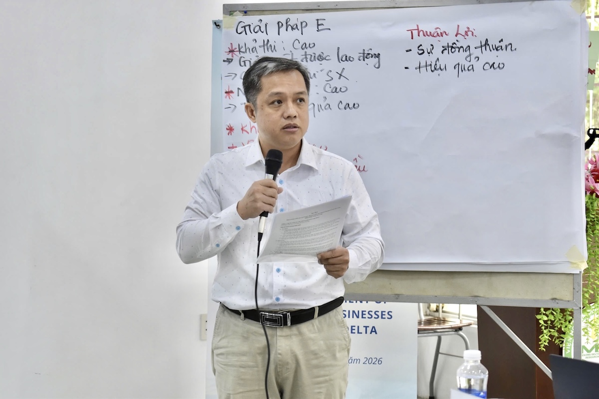 💬 Thông qua các phiên thảo luận nhóm, các khách mời đã cùng trao đổi, chia sẻ kinh nghiệm thực tiễn, xác định những điều kiện thuận lợi, thách thức và nút thắt liên quan đến nguồn nhân lực, tổ chức sản xuất và mô hình kinh doanh lúa gạo và trái cây tại vùng Đồng bằng sông Cửu Long. Trên cơ sở đó, các nhóm thảo luận đã đề xuất các giải pháp và hành động ưu tiên nhằm nâng cao năng lực tổ chức, thúc đẩy liên kết chuỗi giá trị và hỗ trợ tiến trình chuyển đổi nông nghiệp theo hướng hiệu quả, bền vững và thích ứng.