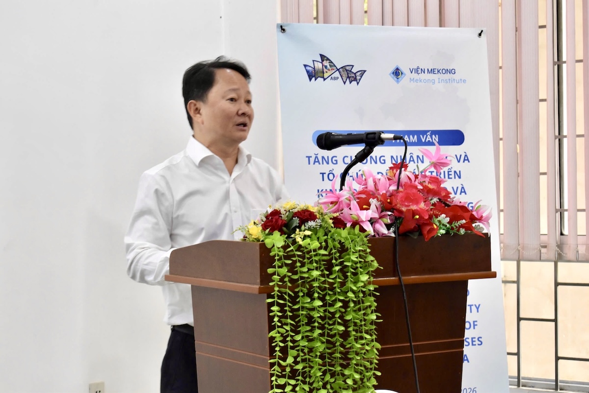 Phát biểu khai mạc, PGS. TS Văn Phạm Đăng Trí, Viện trưởng Viện Mekong và Ông Li Guo, Đại diện Ngân hàng Thế giới (World Bank) nhấn mạnh vai trò then chốt của nguồn nhân lực, tổ chức sản xuất và liên kết chuỗi giá trị trong tiến trình chuyển đổi nông nghiệp bền vững của vùng. Đồng thời cũng chia sẻ những góc nhìn thực tiễn xoay quanh yêu cầu đổi mới mô hình phát triển nông nghiệp trước các biến động kinh tế - môi trường hiện nay.